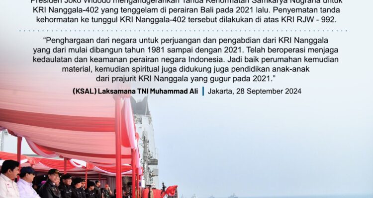 Atas Pengabdian KRI Nanggala-402, Presiden Jokowi Anuegrahkan Samkarya NugrahaNasional|September 30, 2024by Redaktur RedakturJakarta – Presiden Joko Widodo (Jokowi) menganugerahkan Tanda Kehormatan Samkarya Nugraha untuk